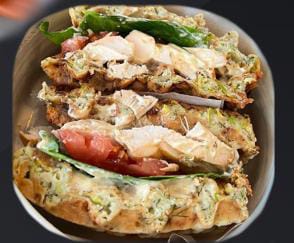 кабачки, мука, яйцо, курица, творожный сыр, авокадо, микс салат