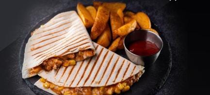 тортилья, кукуруза, курица, соус свит чили, сыр моцарелла, деревенский кетчуп