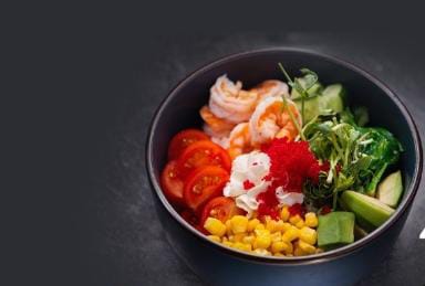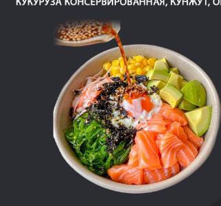 рис, черри, лосось, соус гуакамоле, бобы эдаме, кукуруза консервированная, кунжут, огурец свежий